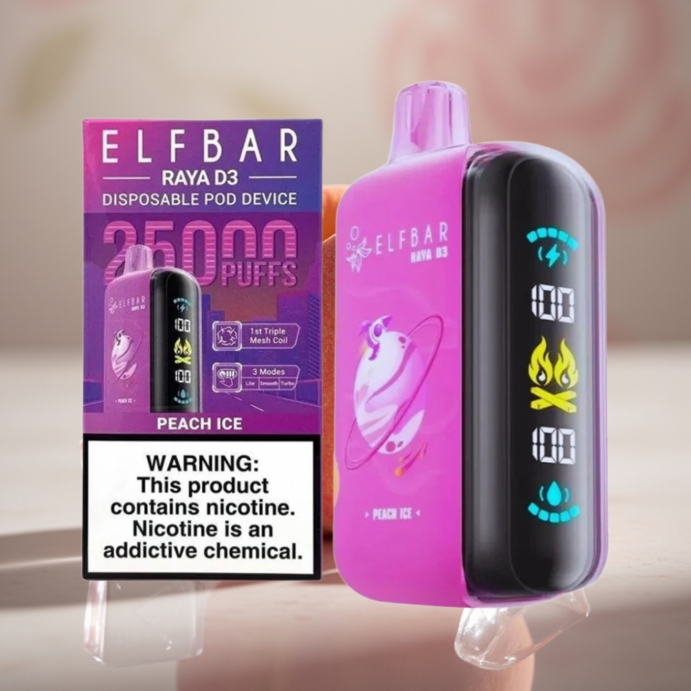 ELF BAR RAYA D3 25000 Puff Barát Őszibarack Jég tölthető e-párna