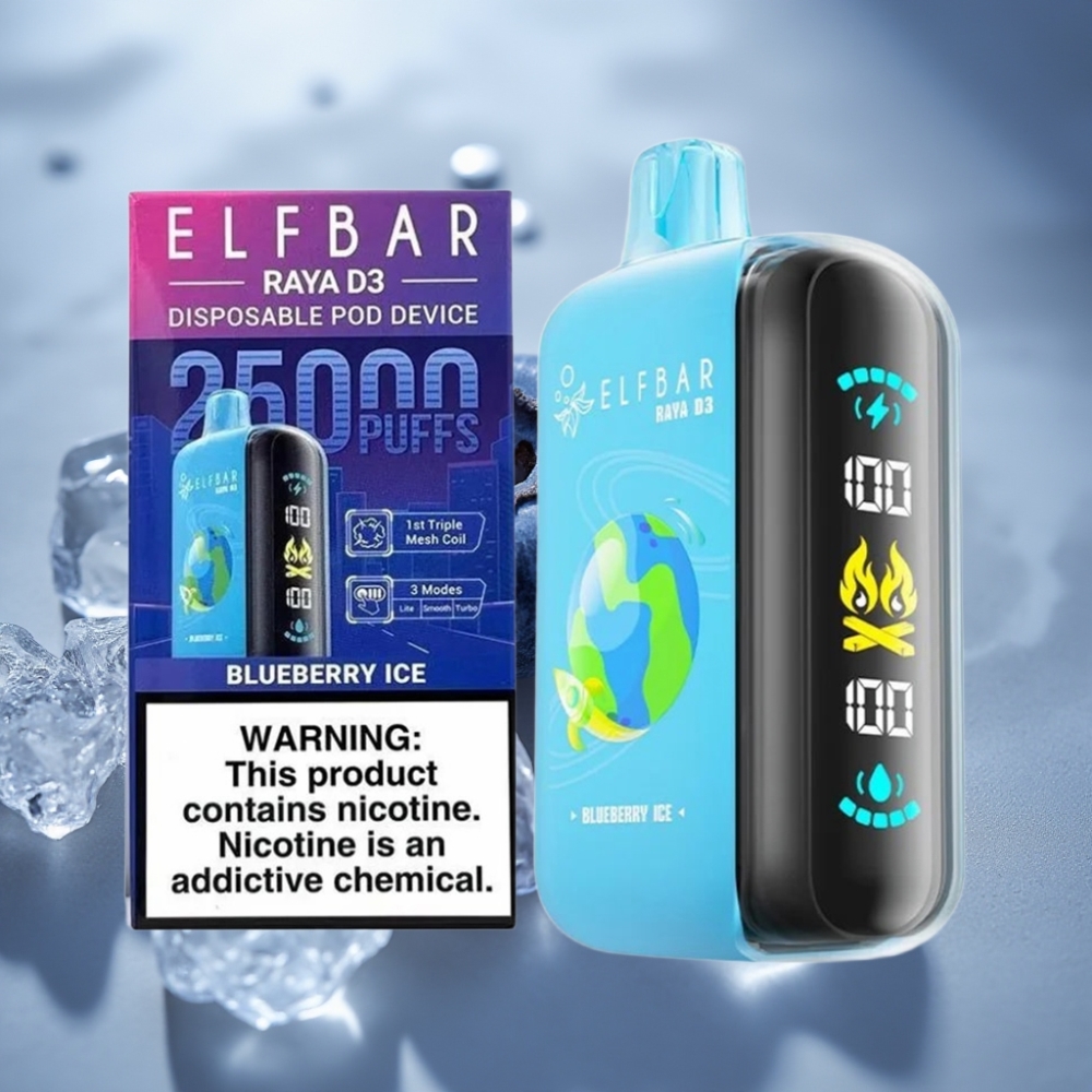ELF BAR RAYA D3 25000 Puff Egszerhasználatos E-vizipipa 23ml 5% Nikotin Kékáfonya Jég